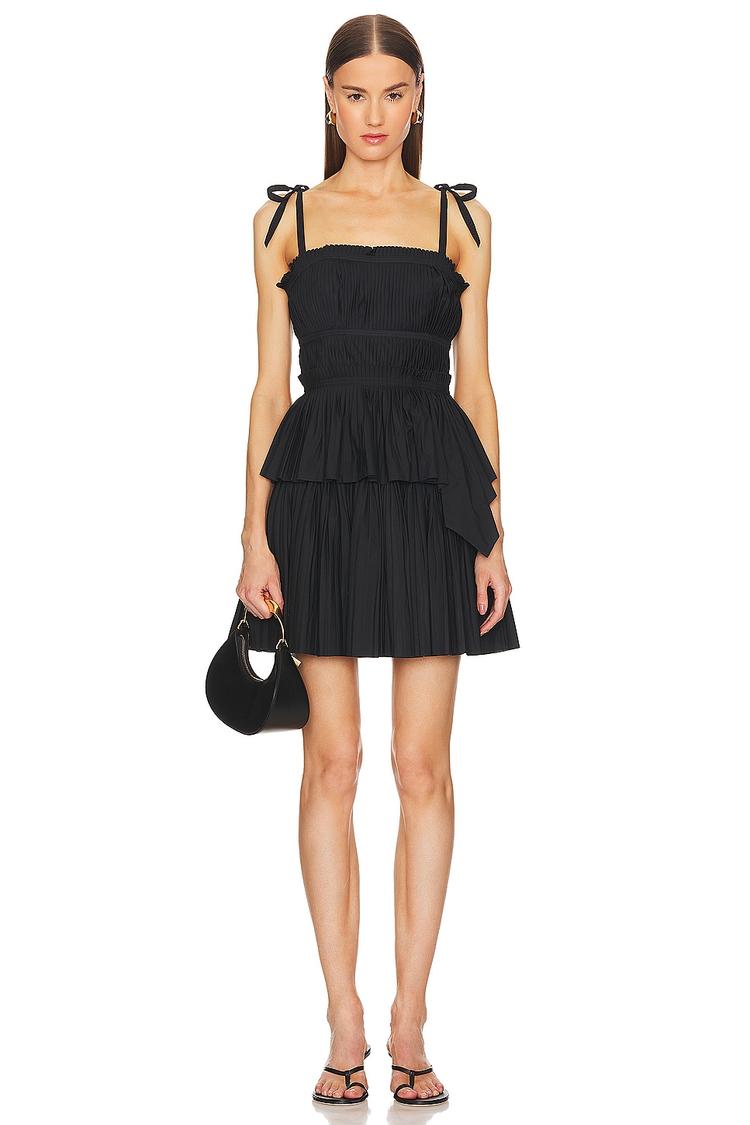 Soft cotton poplin with a pleated bodice and tiered hem crafts a charming babydoll silhouette in classic matte black. The adjustable tie-up shoulder straps and hidden side zipper ensure a perfect fit, while the sleeveless square neckline adds fresh, casual chic appeal. This mini-length dress flows relaxed and layered, making it ideal for warm spring and summer days. Perfect for casual outings, brunch dates, or relaxed evening occasions, it blends timeless style with playful details and breathable comfort.