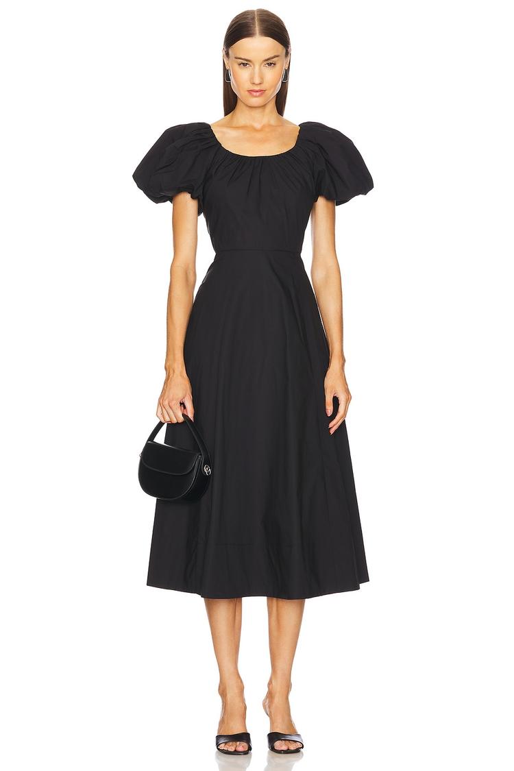 Classic elegance defines this matte black A-Line midi dress crafted from lightweight cotton poplin. Featuring a regular fit, puffed half sleeves, and a graceful round neckline, it offers a timeless silhouette enhanced by a concealed back zipper and practical side seam pockets. The clean hemline complements its versatile style, making it ideal for brunch, date nights, or professional workwear settings. This breathable, unlined dress balances comfort with sophistication, perfect for spring and summer occasions.