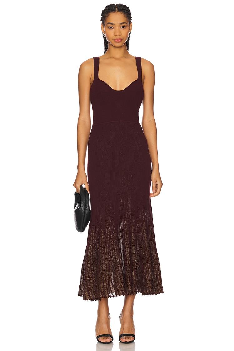 A slinky knit fabric with metallic threading defines this fitted slip dress, featuring a sweetheart neckline and wide straps for a modern yet elegant silhouette. The midi length with a pleated hemline adds movement and sophistication, perfect for date nights, cocktail parties, or stylish evenings out. Crafted from a viscose, polyester, and spandex blend, this versatile dress offers comfort and a subtle shimmer that elevates any occasion. The covered back and slip-on style enhance ease of wear while maintaining a sleek look.