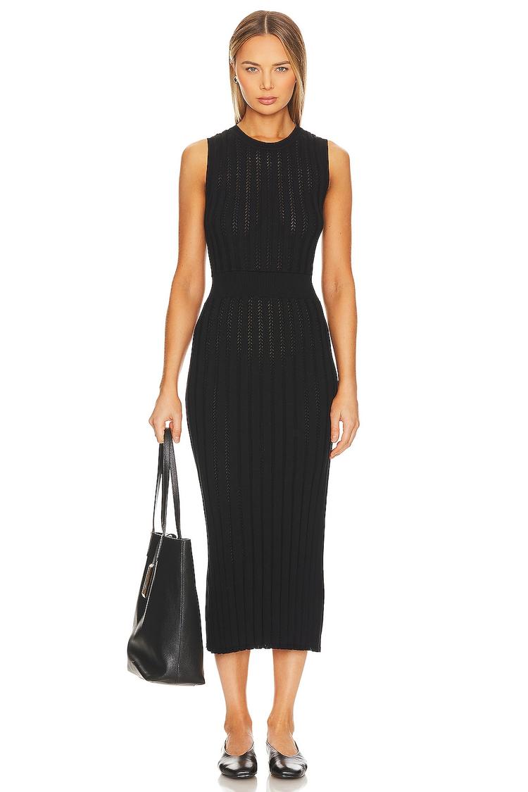 A sleek silhouette defined by a fitted sheath shape and classic round neckline, this matte black knit dress offers understated elegance. Crafted from lightweight cotton knit fabric, it features sleeveless wide straps and a clean midi hemline that falls gracefully below the knee. The semi-sheer texture adds a subtle allure, perfect for layering with stylish undergarments. Ideal for casual outings, brunch dates, or everyday wear, this versatile piece embodies minimalist chic with effortless comfort across spring, summer, and autumn seasons.