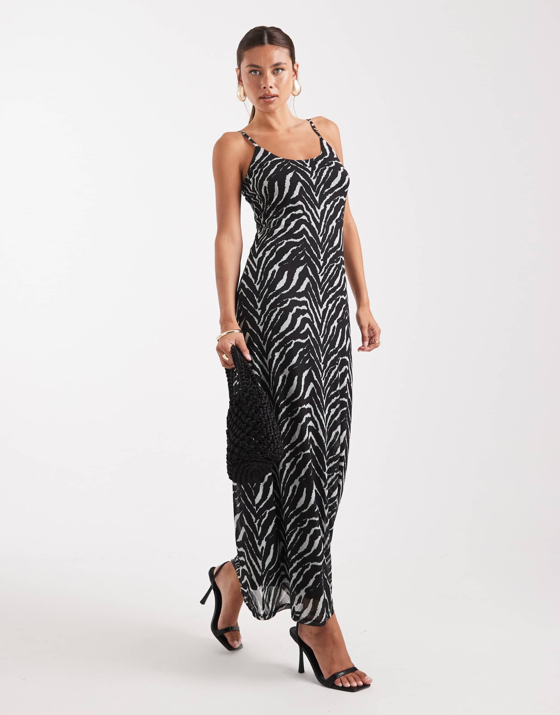 VERO MODA MESH CAMI STRAP MAXI DRESS IN ZEBRA PRINT