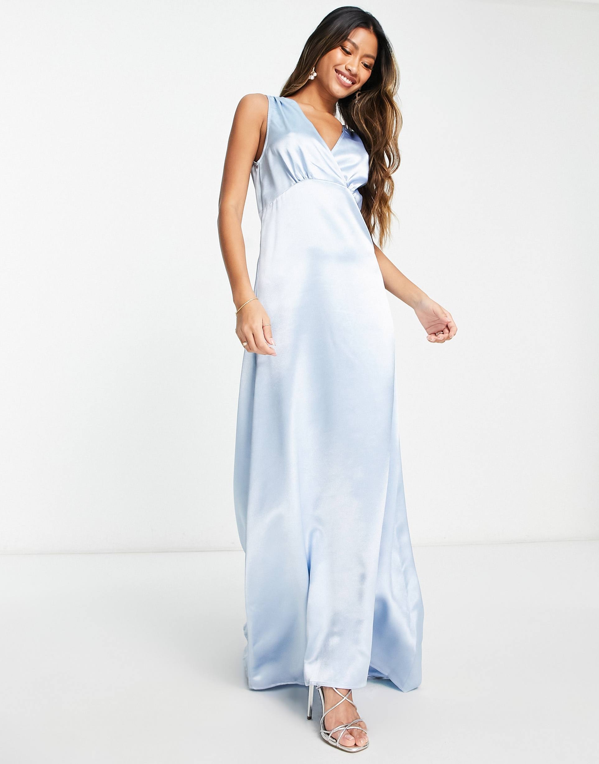 pastel blue satin maxi dress