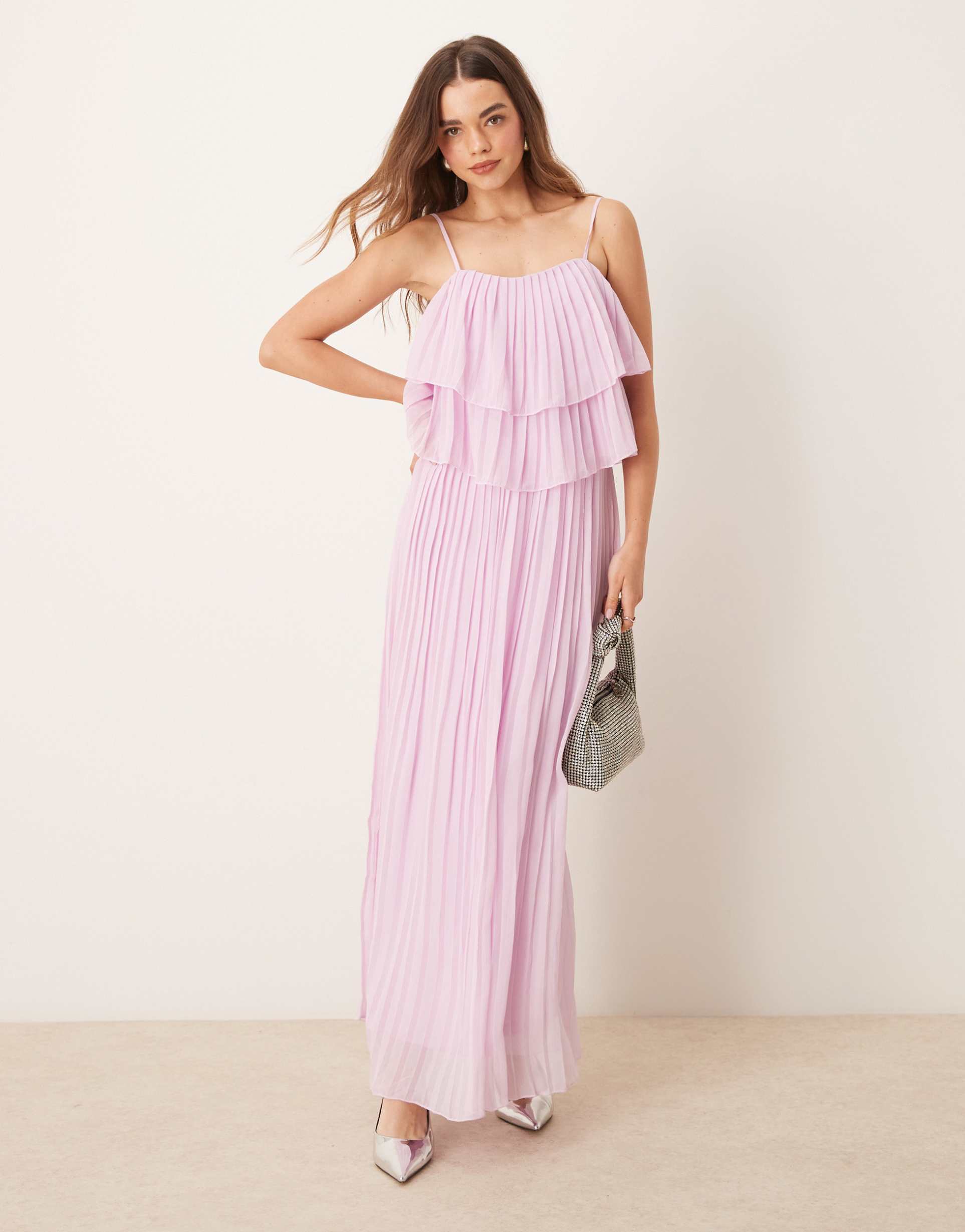 VILA PLEATED RUFFLE LAYER CAMI MAXI DRESS IN ORCHID PINK