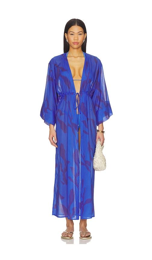 VIX SWIMWEAR YUMI LONG COVER UP DRESS IN BLUE.