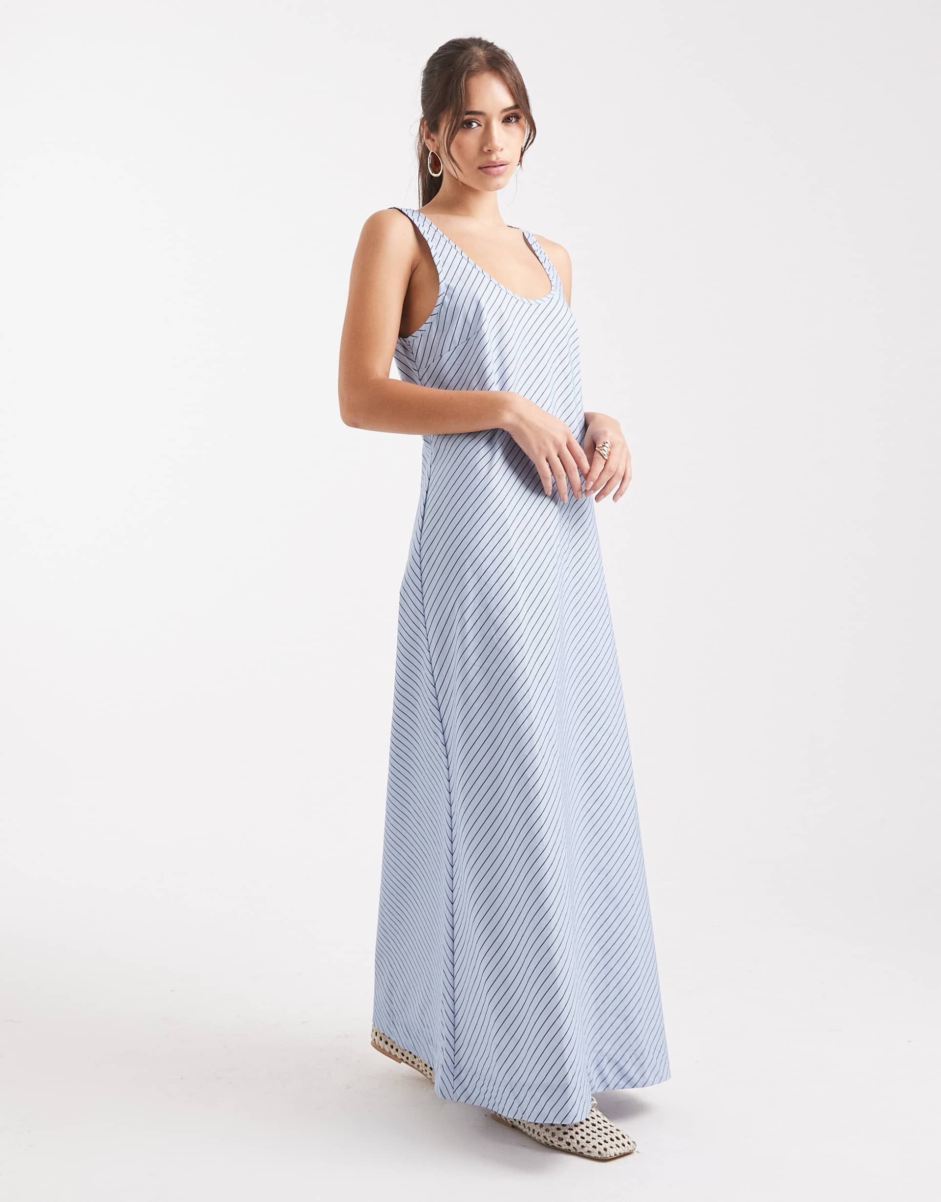 blue striped maxi dress