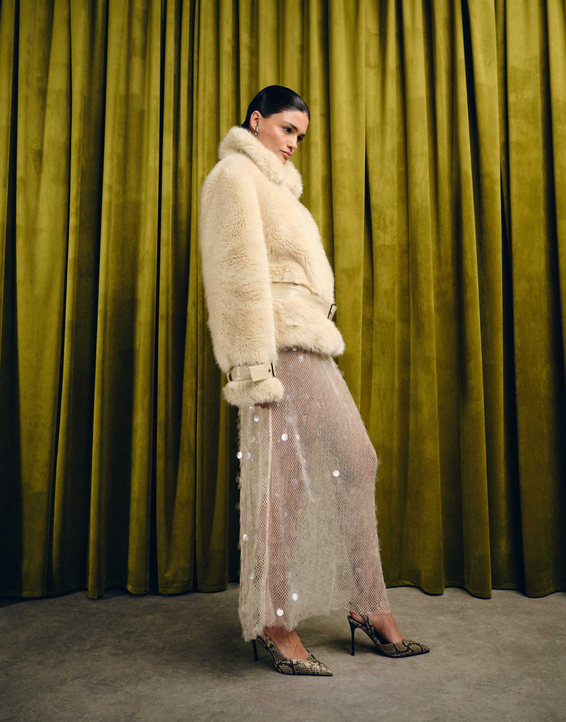 sequined mesh midi dress