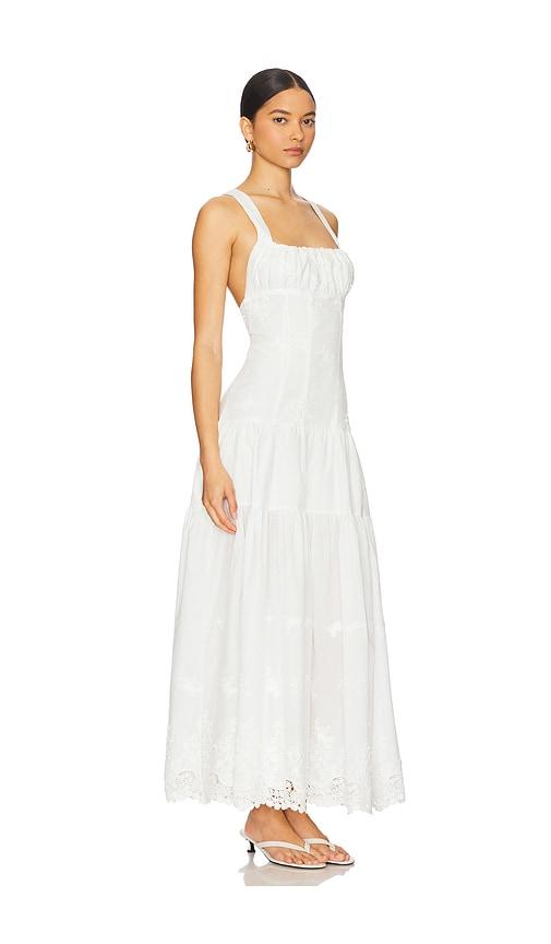 WEWOREWHAT PEPLUM MIDI DRESS IN IVORY.