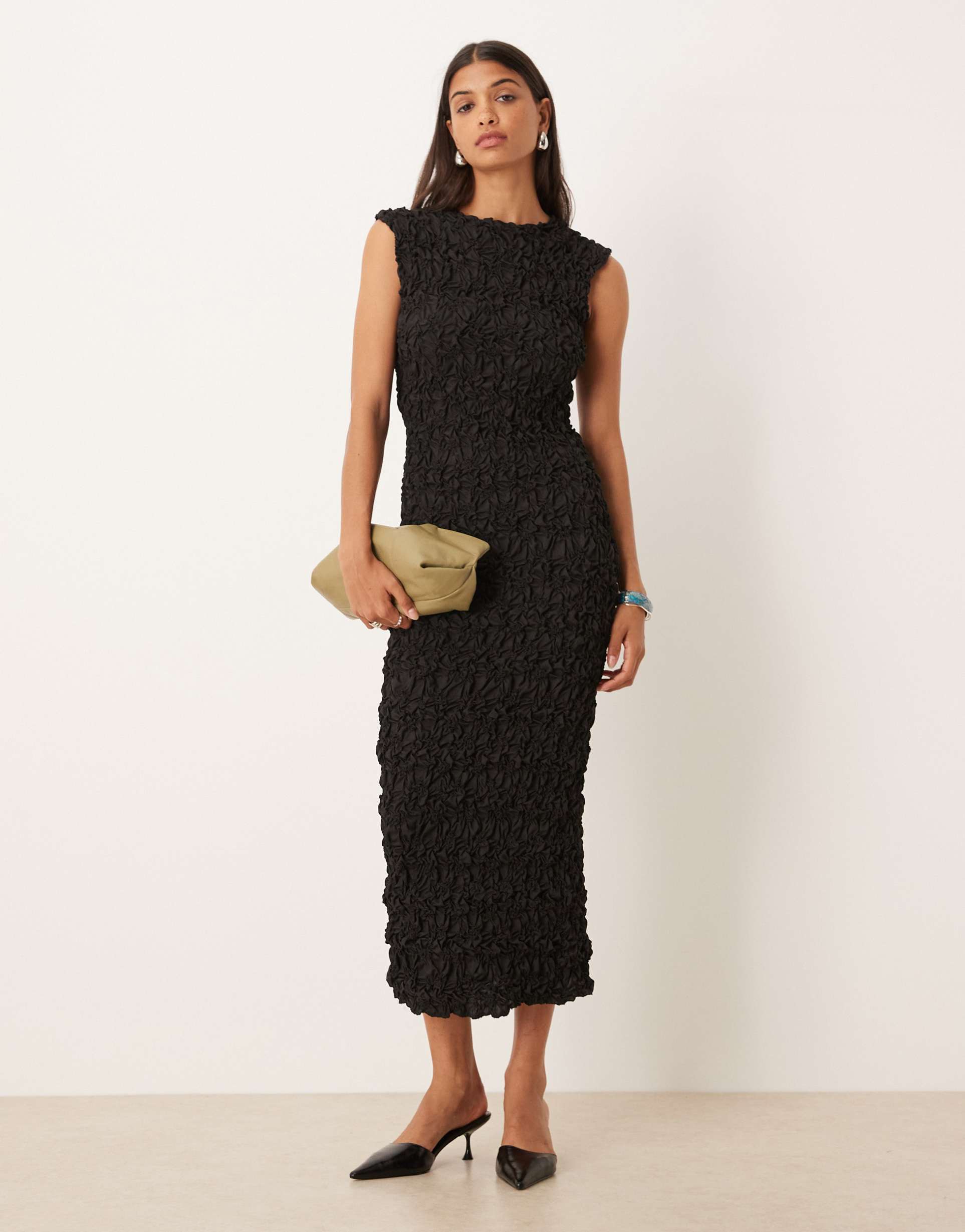 YAS 3D TEXTURED SLEEVELESS MAXI DRESS IN BLACK