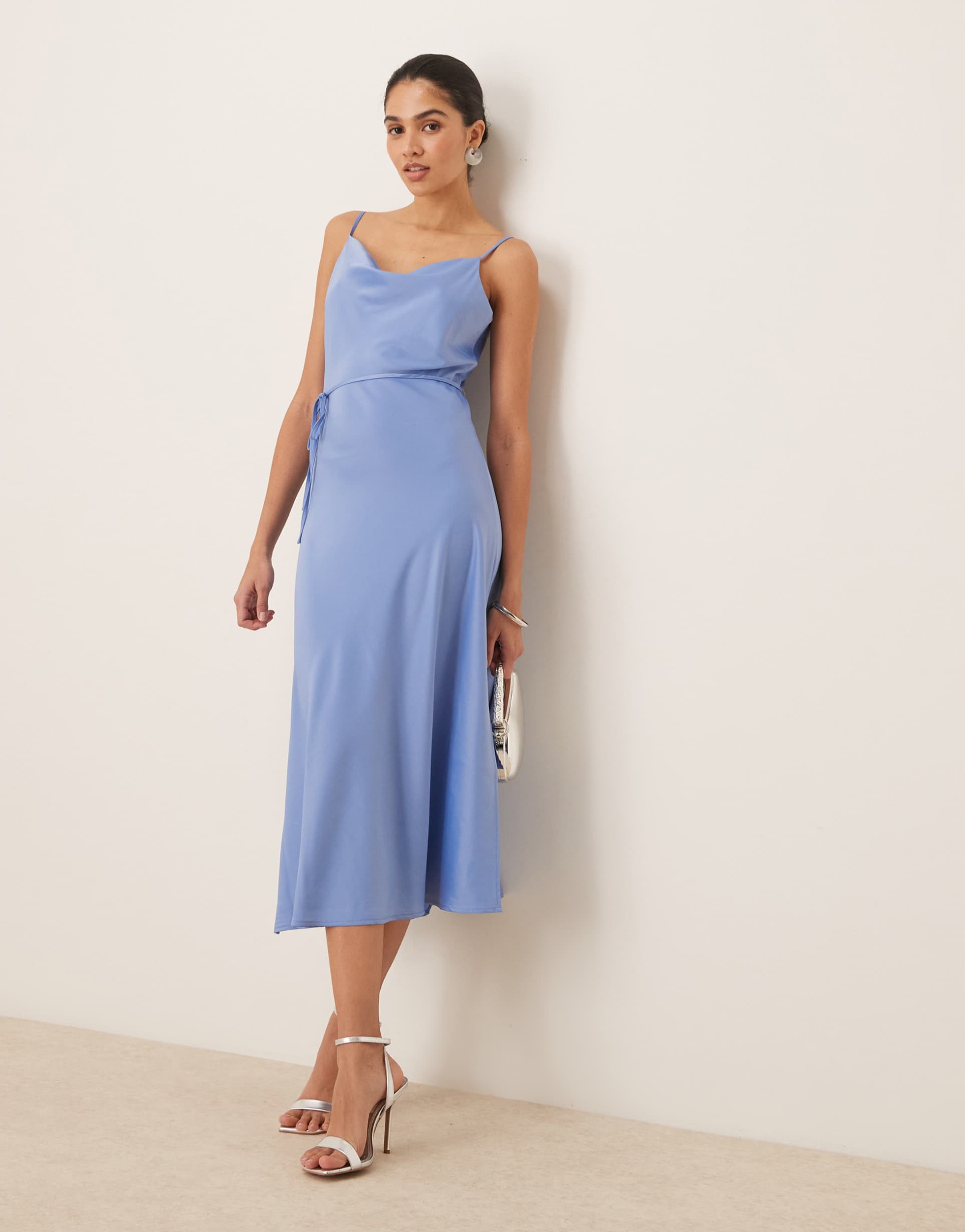 light blue satin slip dress