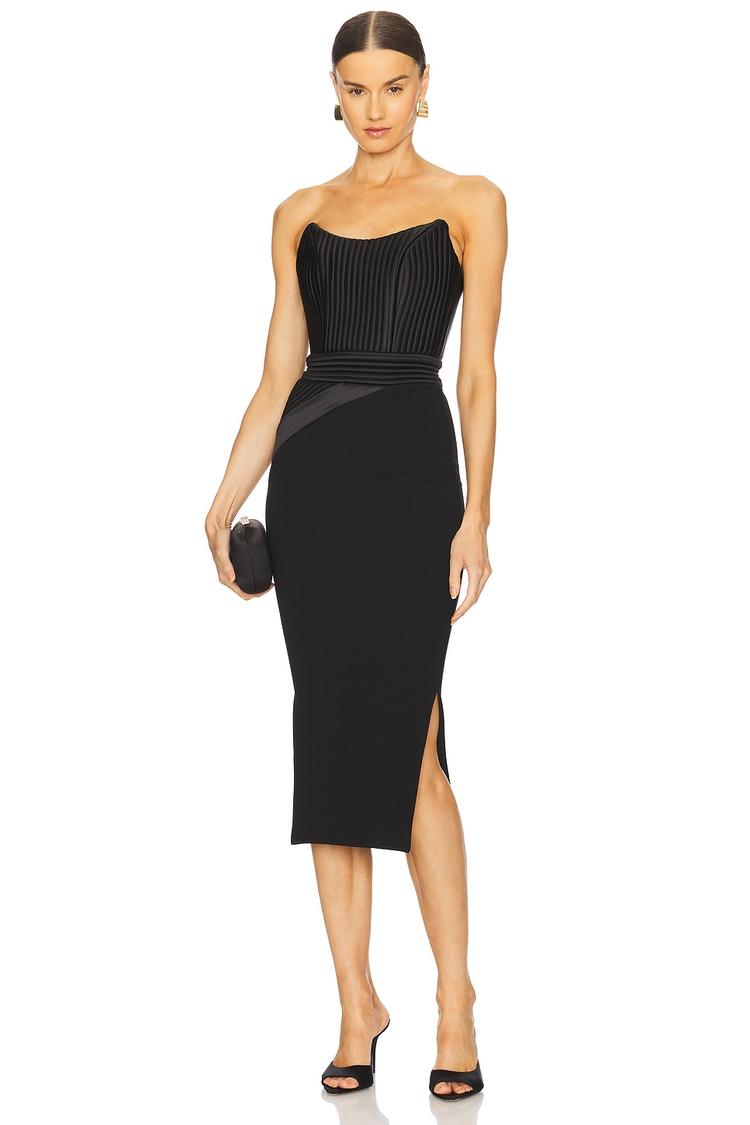 black corset midi dress