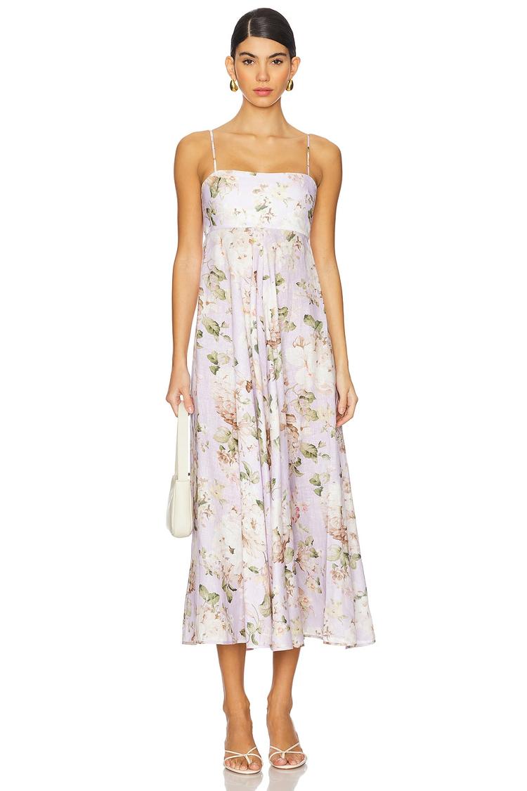 Soft linen fabric and a figure-skimming slip silhouette define this Acacia Bandeau Midi Dress. The straight neckline is complemented by delicate adjustable spaghetti straps and boned sides for subtle shaping. A hidden back zipper ensures a sleek finish, while the airy midi length and floral print create an effortlessly romantic and bohemian vibe. Ideal for spring and summer, this versatile dress transitions seamlessly from brunch dates to vacation strolls and elegant evenings. The partially lined bust adds comfort, making it a refined choice for warm-weather occasions.
