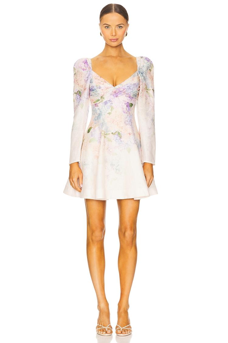 Soft linen and cotton blend fabric with a delicate floral print creates a romantic mini dress featuring long puffed sleeves and a pleated bodice. The fitted A-line silhouette flatters with a flattering V-neckline and a clean hemline. Functional side seam pockets add practicality, while the hidden back zipper closure ensures a sleek finish. Perfect for spring and summer occasions such as brunch, date nights, and cocktail parties, this dress combines elegance and comfort in one versatile piece.