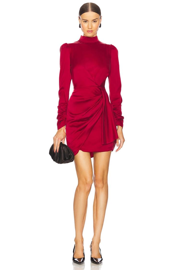 Rich matte red silk with a touch of elastane sculpts a fitted mini silhouette that exudes sophistication. The high neckline and long sleeves balance the mini length, while delicate ruffles and draping at the front add dynamic texture and feminine flair. Finished with a hidden back zipper and fully lined for comfort, this dress shines in elegant, chic settings. Perfect for cocktail events, date nights, or stylish night outs, its lightweight satin fabric ensures a graceful flow and standout presence wherever you go.