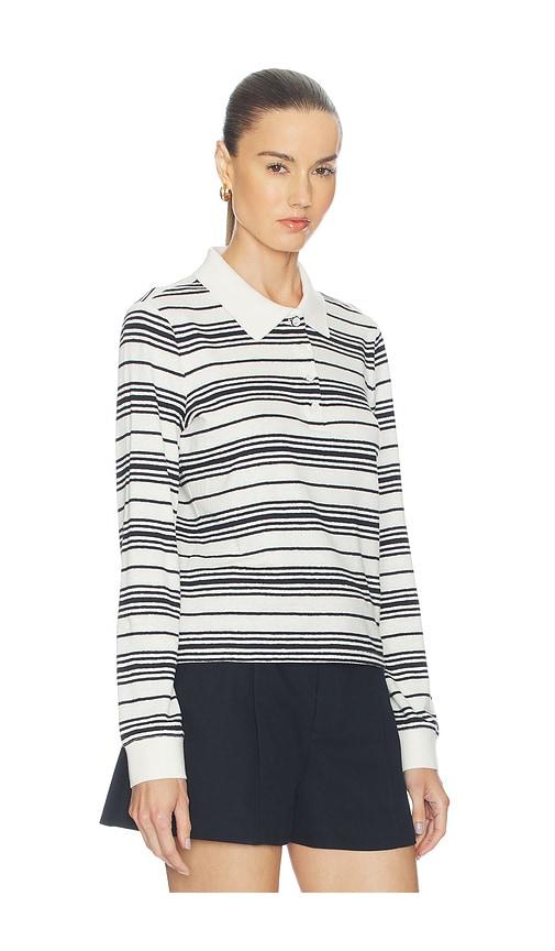 FRAME THE STRIPED LONG SLEEVE POLO IN BLACK,WHITE.