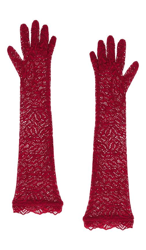 BEAUFILLE STRETCH LACE ELBOW GLOVES IN BURGUNDY.