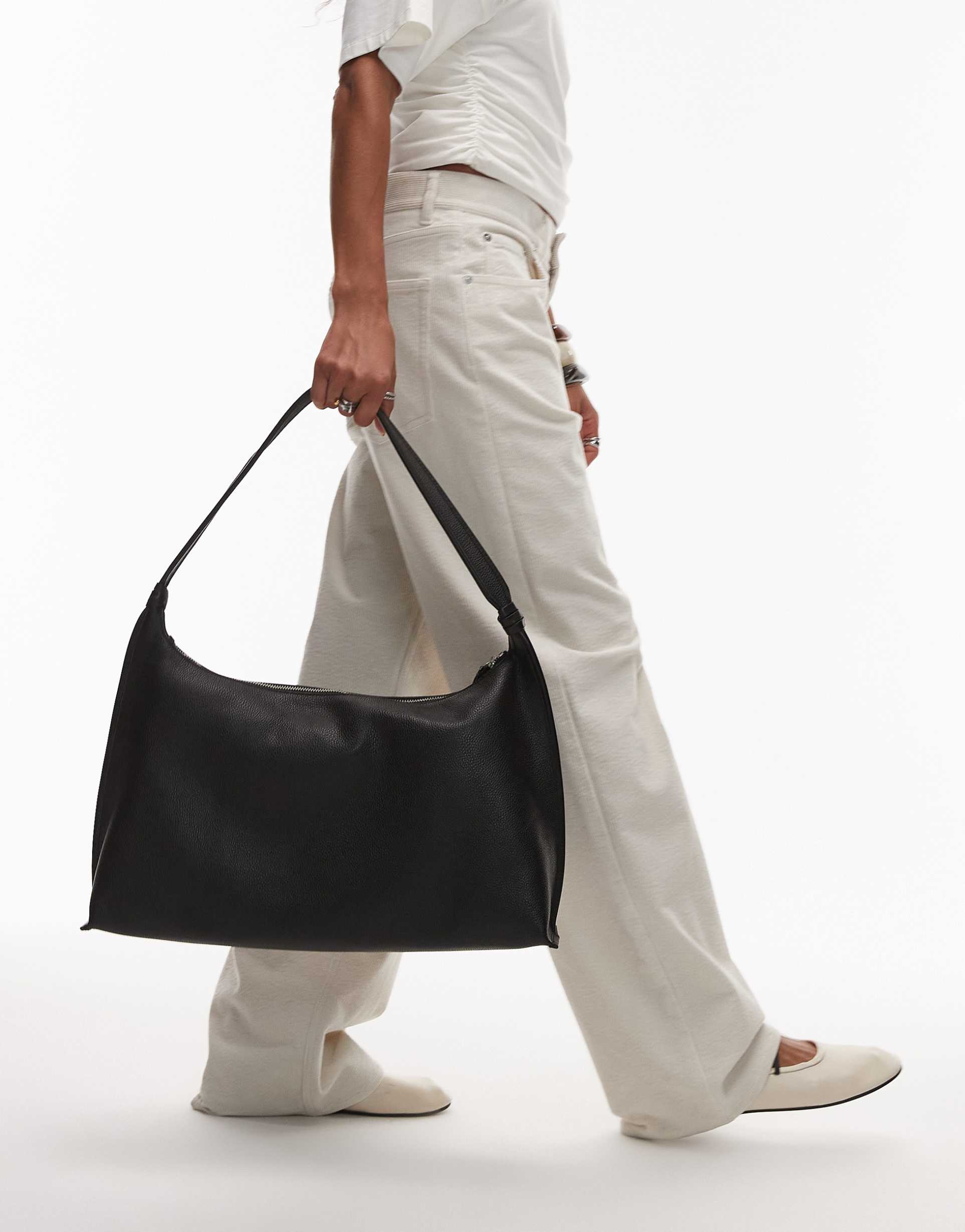 & OTHER STORIES LEATHER CURVED SHOULDER BAG IN BLACK