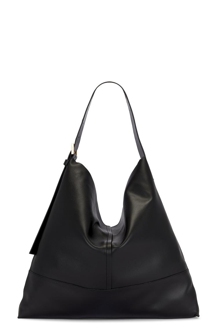 Meet the Asha Shoulder Bag in sleek black leather—a minimalist yet luxurious tote designed for everyday elegance. Crafted from sheep leather inside and out, it features an open-top main compartment with a single interior slip pocket for small essentials. The integrated, adjustable leather shoulder strap threads over the shoulder with subtle gold-tone hardware, adding a touch of refinement. Measuring roughly 46 cm wide by 43 cm high with a 3 cm depth and a 34 cm strap drop, this versatile bag pairs city polish with weekend ease. Made in India, it’s a timeless companion for work, errands, and evenings out.