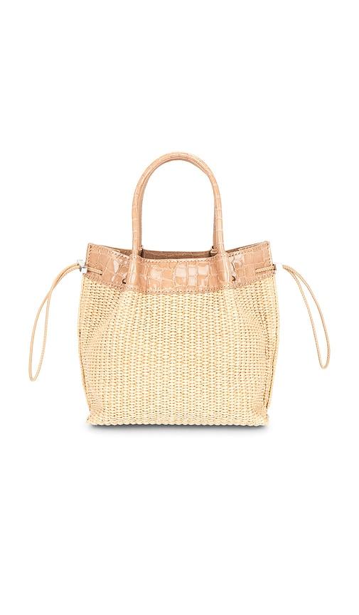 BY FAR BABY KAYLA RAFFIA & CROCO EMBOSSED HANDBAG IN NEUTRAL.