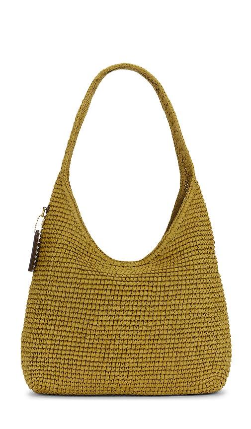 COACH REFINED WEAVE STRAW BROOKLYN 28 SHOULDER BAG IN OLIVE.