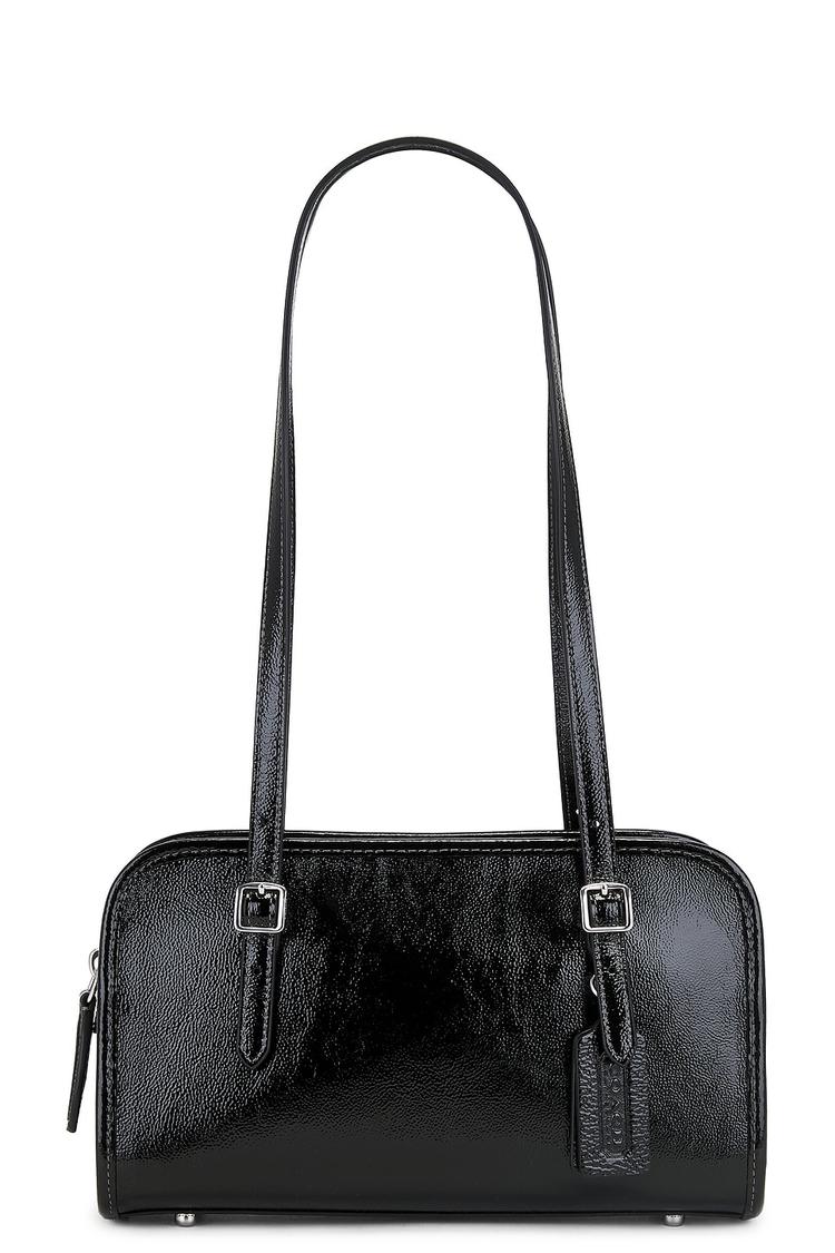 Crinkle patent leather exterior with leather lining and silver-tone hardware