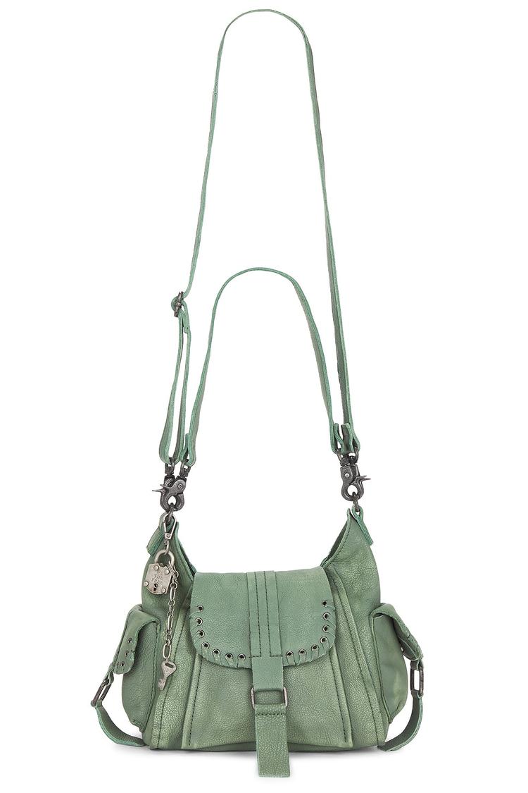 Meet your new go-to companion for effortless, boho-polished style. The Free People x We The Free Baby Leigh Bag is carved from cow leather in a soft sage-green hue with a tactile, slightly weathered finish. The flap-top secures with a magnetic snap, opening to a single main compartment with interior zipper and slip pockets for quick organization. Exterior dual flap pockets and a front slip pocket add practical volume, while aged-silver hardware accents the artisanal vibe. Detachable shoulder and crossbody straps let you wear it hands-free from day to night, everywhere you go.