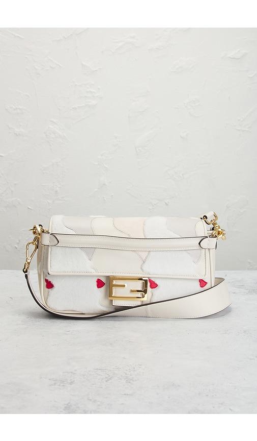FWRD RENEW FENDI MINK FUR NAPPA FACES BAGUETTE SHOULDER BAG IN IVORY.
