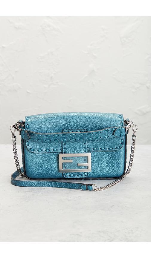 FWRD RENEW FENDI SELLERIA MINI BAGUETTE SHOULDER BAG IN BLUE.