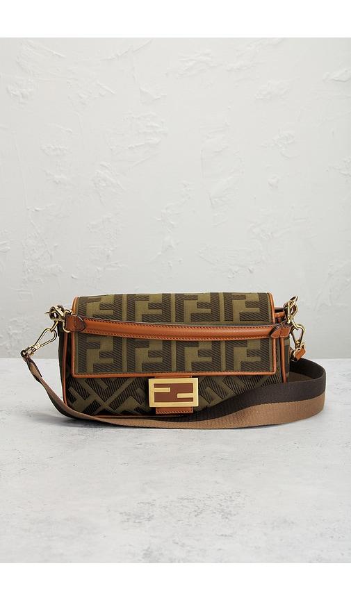 FWRD RENEW FENDI VITELLO KING FF EMBROIDERED RE-EDITION BAGUETTE SHOULDER BAG IN BROWN.