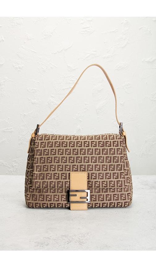 FWRD RENEW FENDI ZUCCHINO MAMA BAGUETTE SHOULDER BAG IN BEIGE.