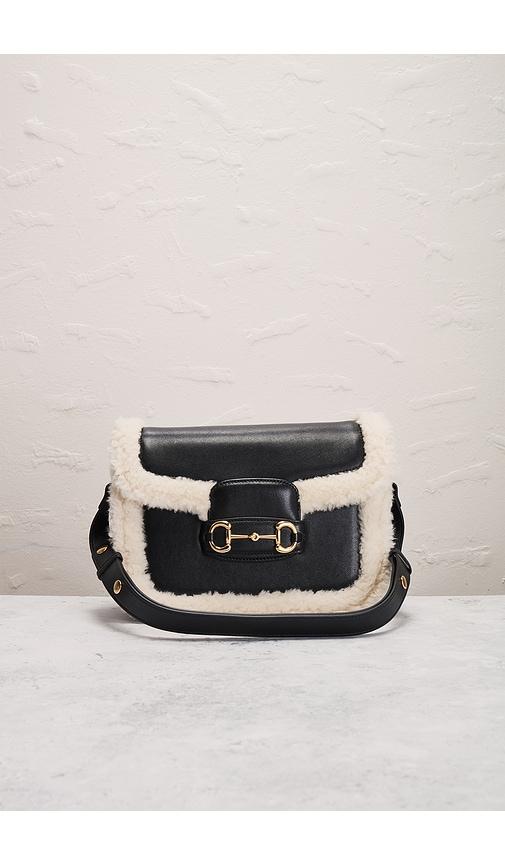 FWRD RENEW GUCCI SHEARLING HORSEBIT 1955 SHOULDER BAG IN BLACK.