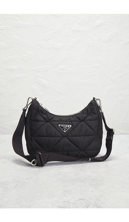 FWRD RENEW PRADA PADDED RE-NYLON SHOULDER BAG IN BLACK.