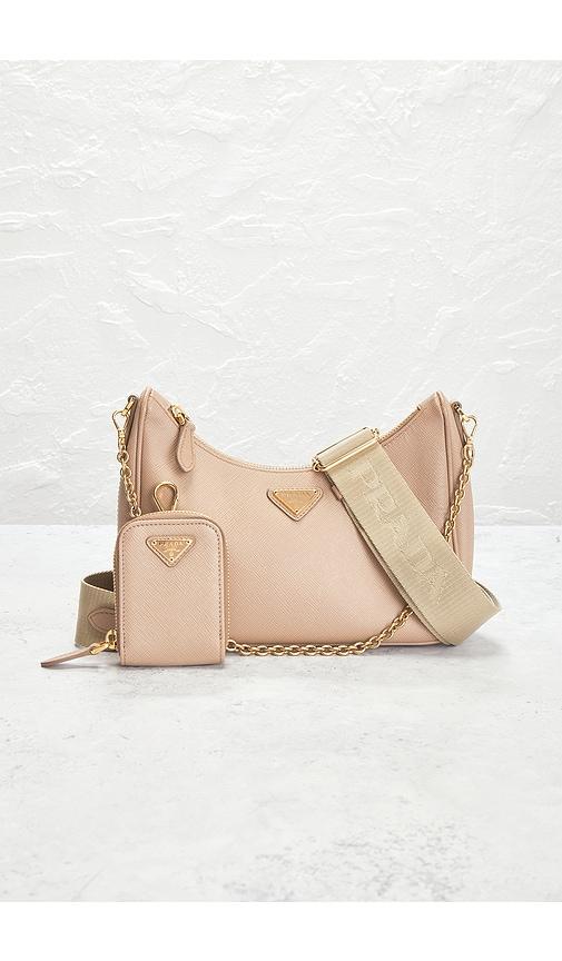 FWRD RENEW PRADA RE-EDITION 2005 SAFFIANO SHOULDER BAG IN BEIGE.