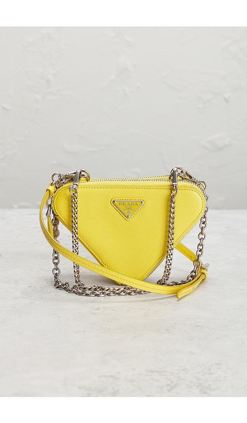 FWRD RENEW PRADA SAFFIANO TRIANGLE SHOULDER BAG IN YELLOW.