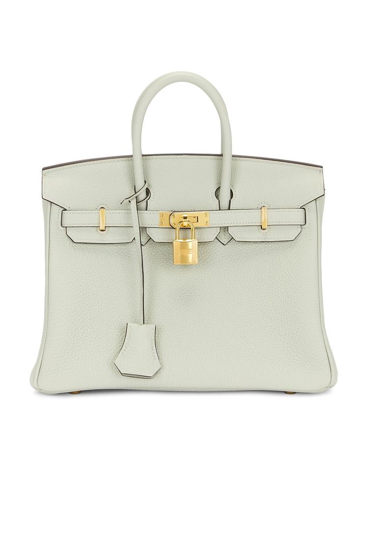 Meet your new go-to icon of timeless luxury: the Hermes Birkin 25 in pale gray Togo leather. This structured top-handle bag closes with a signature gold turn-lock and wears a gleaming gold-tone clochette with lock. Inside, a single main compartment houses a zip pocket and a flat pocket for organization. Crafted in France and presented with the care booklet and dust bag, it exudes understated elegance for every occasion—from formal events to refined everyday wear. With its flawless silhouette, two top handles, and iconic hardware, this Birkin elevates any outfit with quiet confidence.