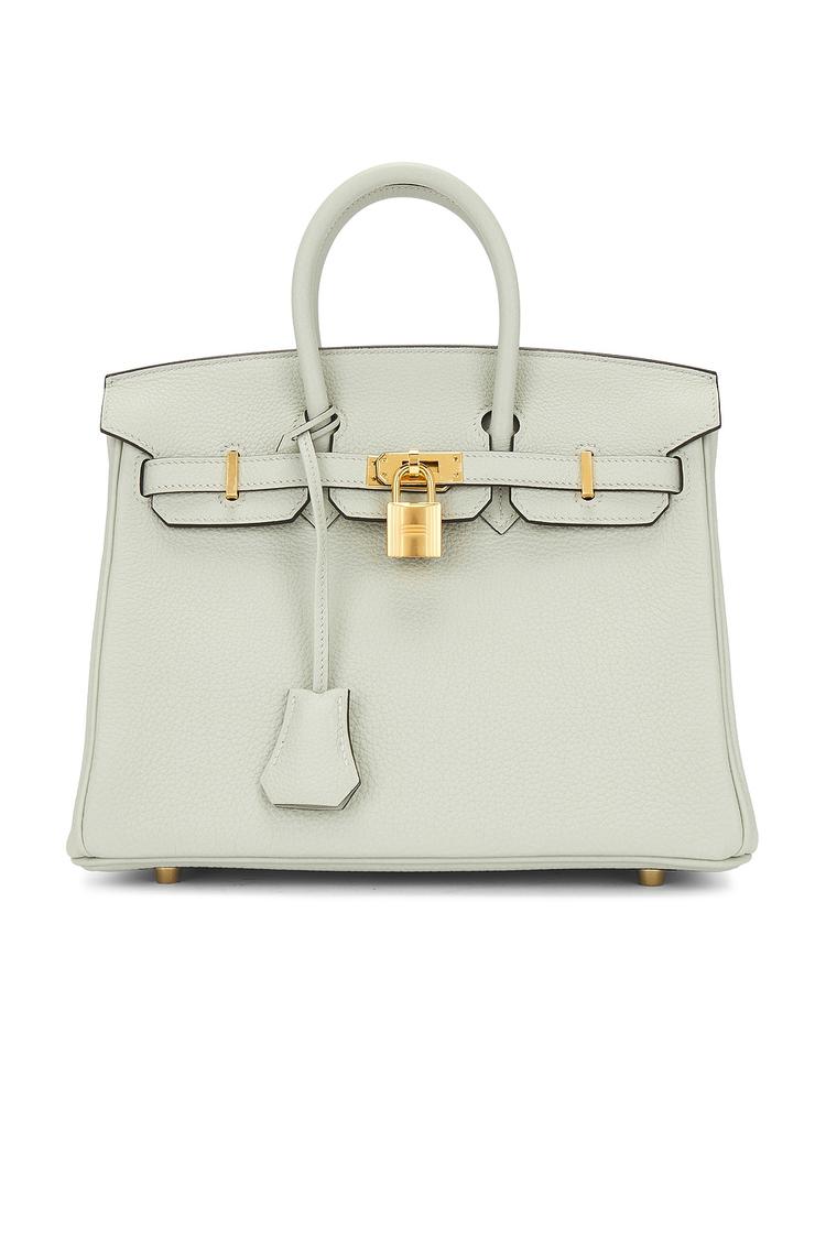 Meet a timeless symbol of luxury: a pale gray Hermes Birkin 25 in supple Togo leather. This top-handle icon features pristine gold-tone hardware and a secure turn-lock closure, opening to a single spacious main compartment with interior pockets for discreet organization. The understated, versatile shade makes it a chic partner for both tailored workwear and refined evening looks, while the signature clochette with lock hints at heritage craftsmanship. A complete set—including the original box, dustbags, and accessories—elevates every moment from day to night with effortless elegance.