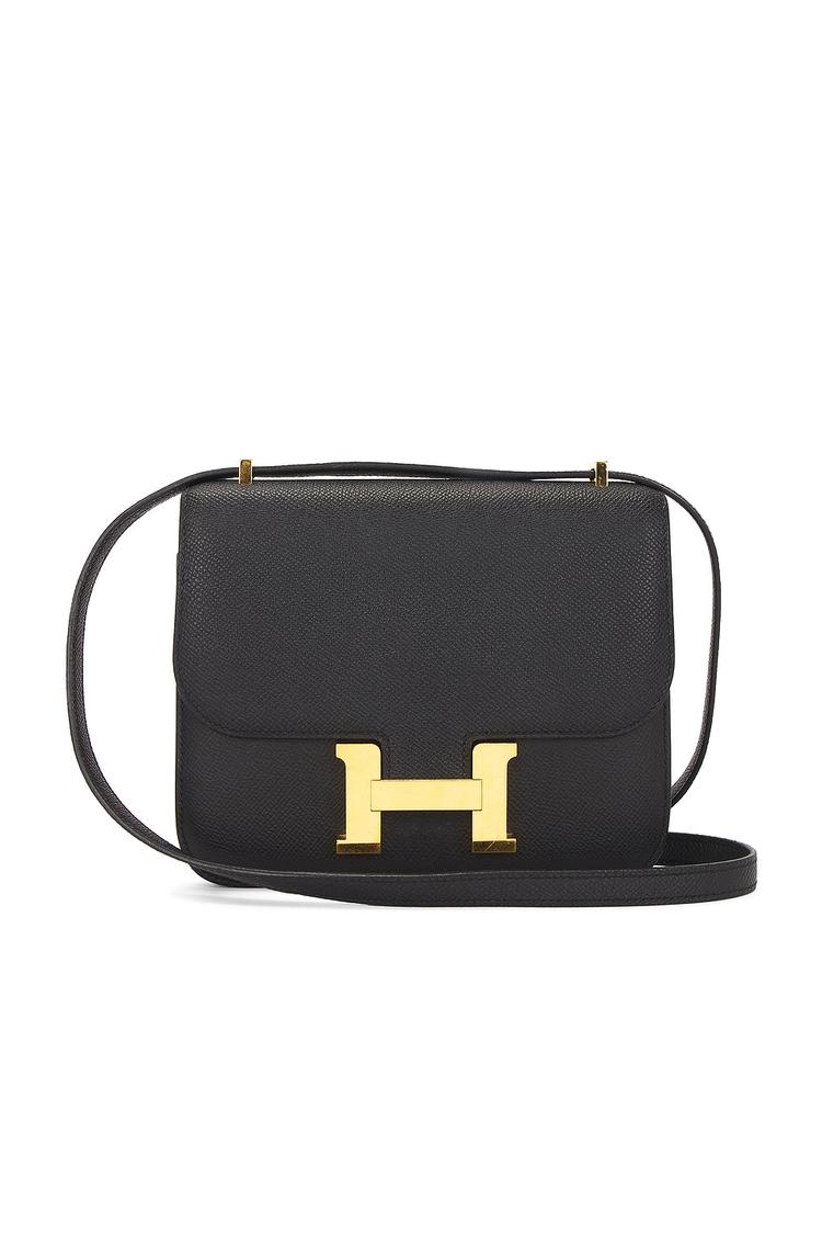 Meet the Hermes Epsom Mini Constance 18 Shoulder Bag: a compact icon in midnight black calfskin that exudes timeless refinement. The gold-tone H clasp anchors a clean flap opening to two snug compartments and interior pockets, keeping essentials perfectly organized. A detachable, adjustable shoulder/crossbody strap offers effortless versatility for day-to-night wear. Made in France with meticulous craftsmanship, this mini Constance pairs with everything from tailored workwear to evening basics, delivering quiet luxury in a sleek, minimalist silhouette. Elevate every moment with this signature piece that blends function and iconic style.