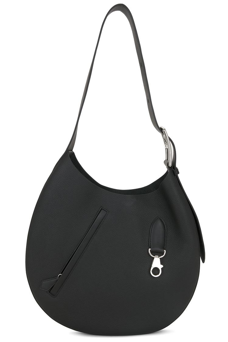 Meet your new go-to companion for effortless style. This black calfskin shoulder bag with suede lining offers a sculptural, minimalist silhouette in a timeless hobo shape. Open main compartment for easy access, a practical exterior zip pocket, and a subtle lobster-clasp hardware detail elevate the look. Silver-tone hardware contrasts the rich black leather, while an adjustable shoulder strap ensures comfortable wear from day to night. Crafted in France, this versatile piece blends classic elegance with modern ease—perfect for busy days and refined evenings alike.
