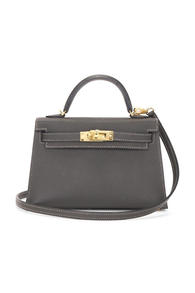 Meet your new go-to for understated luxury: the small, structured Kelly-style handbag. Crafted in grey calfskin with gold-tone hardware, this compact satchel features a foldover top with a gleaming turn-lock, a single main compartment and a slim interior pocket for essentials. The top-handle silhouette is complemented by a detachable shoulder strap for versatile wear, whether you’re heading to the office or elevating evening looks. Made in France, with meticulous stitching and timeless elegance, this mini bag adds a polish that transitions from day to night.
