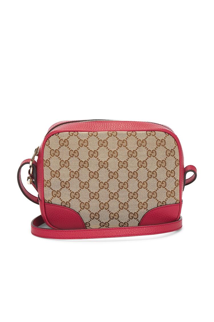 Meet Gucci's Mini Bree Messenger Bag—a compact crossbody that blends timeless elegance with modern practicality. The beige GG monogram canvas is accented by rich red calfskin trim and polished gold-tone hardware, delivering a refined, signature look. A top zip completes the secure main compartment, while eight interior card slots and two flat pockets keep essentials neatly organized. Made in Italy, this versatile bag wears beautifully from day to night—slung over the shoulder or worn crossbody for hands-free ease, all with a distinct, luxe designer edge.