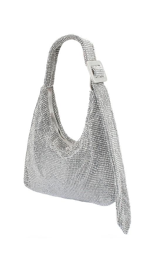 OLGA BERG CALYPSO CRYSTAL SHOULDER BAG IN METALLIC SILVER.