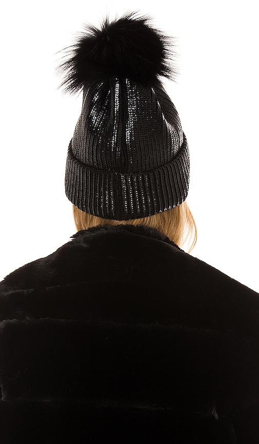 ADRIENNE LANDAU METALLIC POM HAT IN BLACK.
