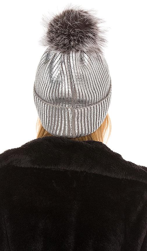 ADRIENNE LANDAU METALLIC POM HAT IN METALLIC SILVER.