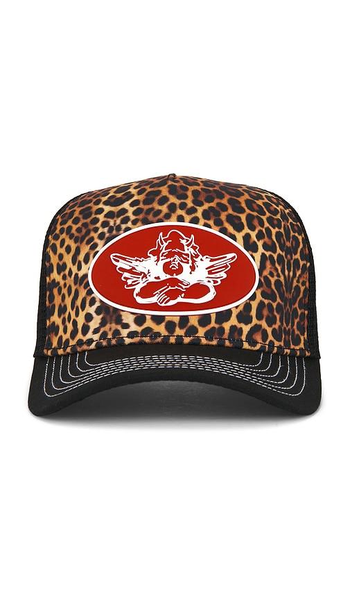 BOYS LIE HE'S A CHEETAH TRUCKER HAT IN BLACK.