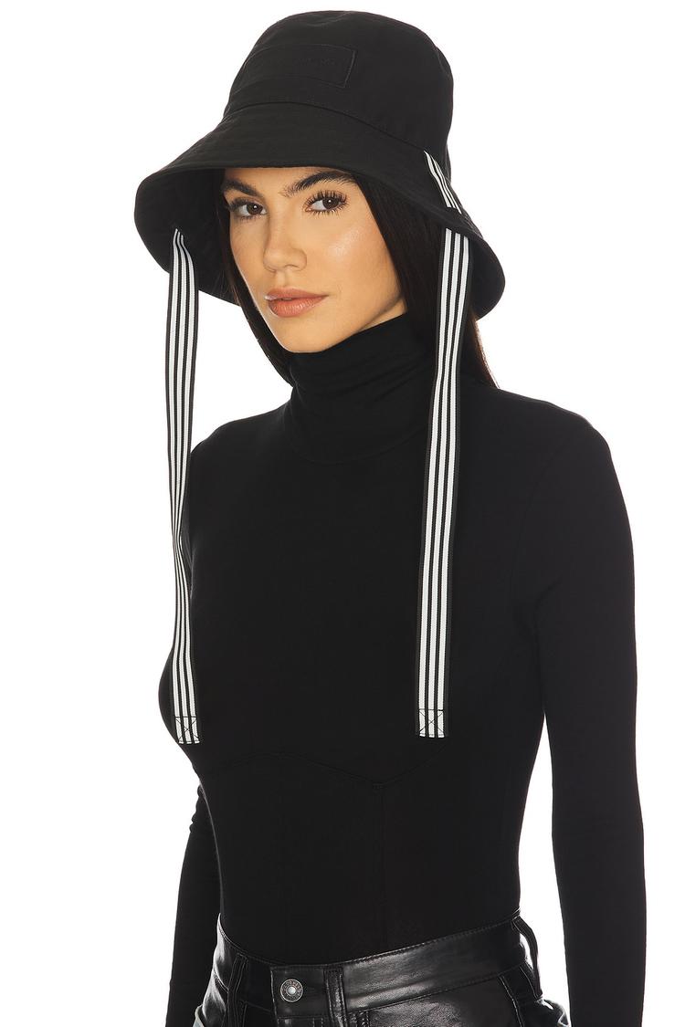 Elevate everyday looks with the Script Bucket Hat from Favorite Daughter. Crafted in breathable canvas and 100% cotton, this sleek black hat features a front tonal logo embroidery for a subtle signature touch. A generous 9 cm brim shades you in style, while an adjustable inner strap guarantees a secure, comfortable fit (OS approx 61 cm). White striped ribbons trail from the sides, adding a playful yet refined twist to a minimalist silhouette. Perfect for casual city days, sunny getaways, or weekend adventures, this versatile hat blends contemporary cool with timeless practicality.