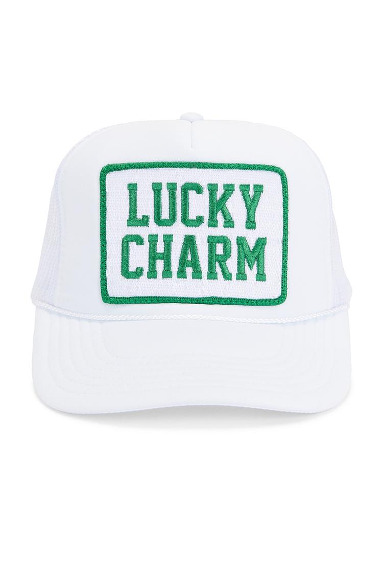 Elevate your casual sunny days with the Lucky Charm Trucker Hat. This white polyester cap features a breathable mesh back for So-called all-day comfort, a curved brim that shields your eyes, and a bold green embroidered logo on the front. The sewn Lucky Charm patch adds a playful, retro vibe, while the adjustable back strap ensures a secure, comfortable fit. Perfect for weekend adventures, streetwear cool, or a laid-back vacation look, this hat pairs effortlessly with tees, denim, and sneakers. Function meets fashion in a must-have topper for everyday confidence.