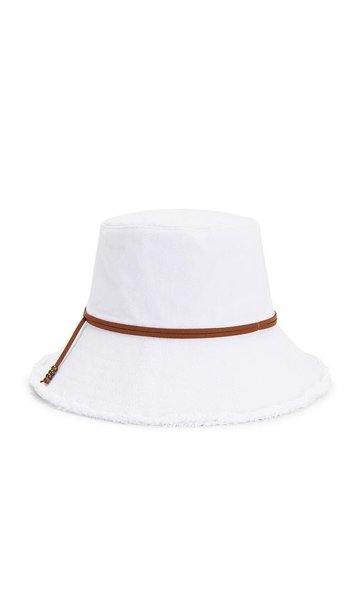 HAT ATTACK FRINGED BUCKET HAT IN WHITE.