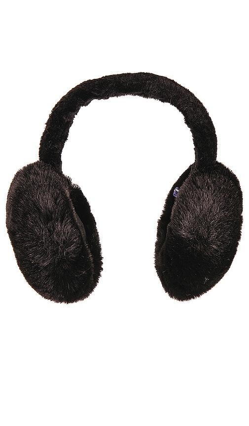 HAT ATTACK OVERSIZED FAUX FUR EARMUFF IN BLACK.