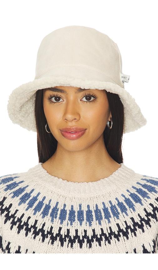 HAT ATTACK REVERSIBLE SHERPA BUCKET HAT IN CREAM.