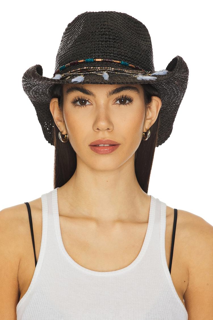 Complete your sun-soaked look with the Morgan Cowboy Hat by Nikki Beach. Crafted in 100% raffia, this dark, hand-woven straw crown is crowned with a colorful beaded band and delicate feather accents for a bohemian Western vibe. Its pinched crown and adjustable wired brim let you tailor shade and silhouette from festival to shoreline. A chic, vacation-ready piece that pairs effortlessly with swimsuits, cover-ups, or casual denim. Lightweight, breathable, and endlessly stylish, it’s the perfect finish for sun-soaked days and resort-era ensembles.