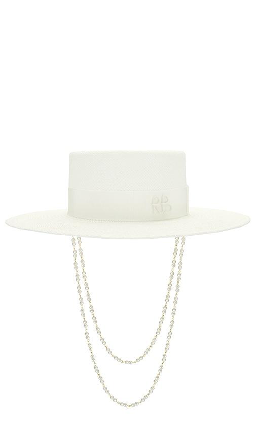 RUSLAN BAGINSKIY DOUBLE CHAIN STRAP BOATER HAT IN WHITE.